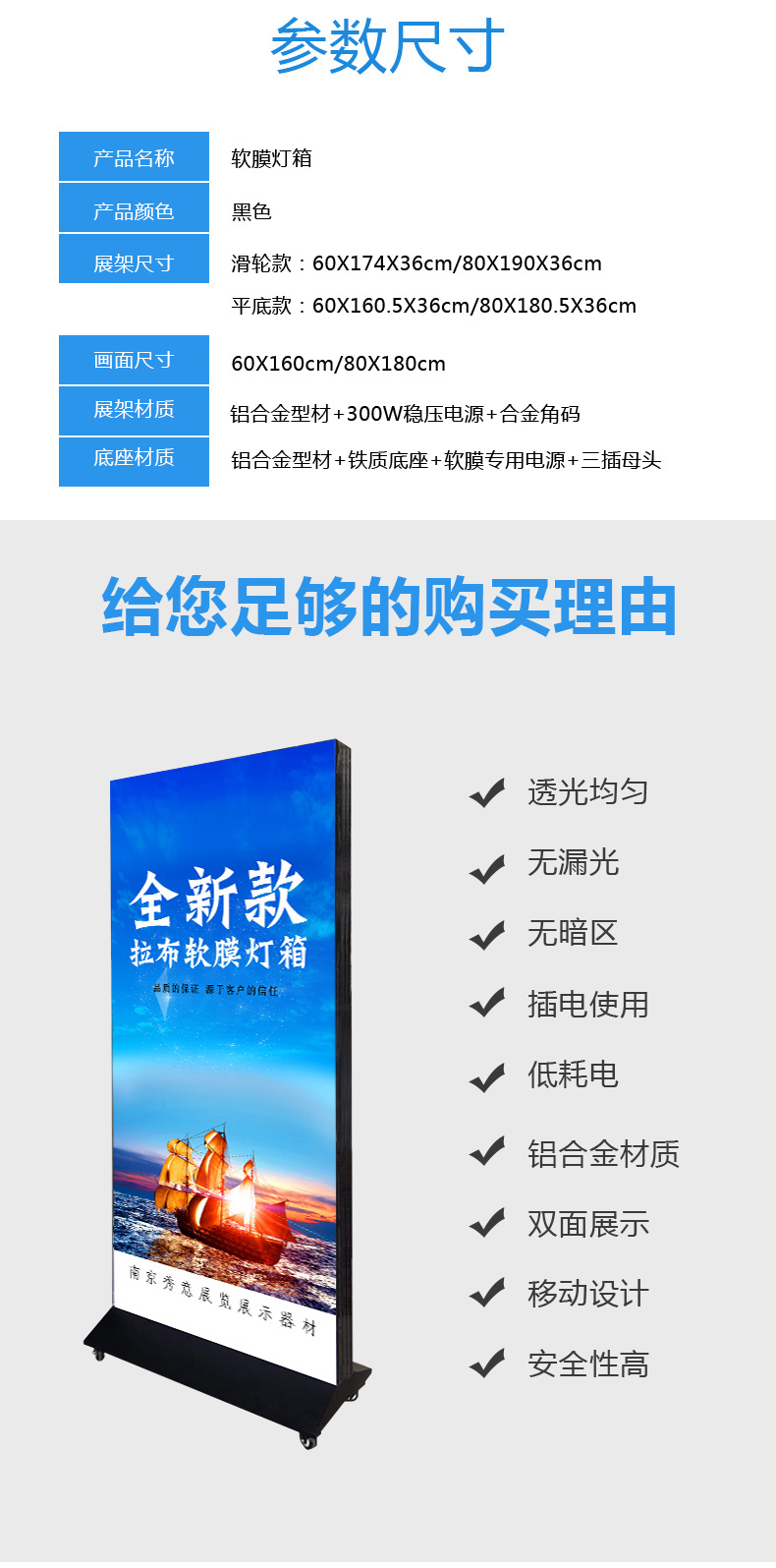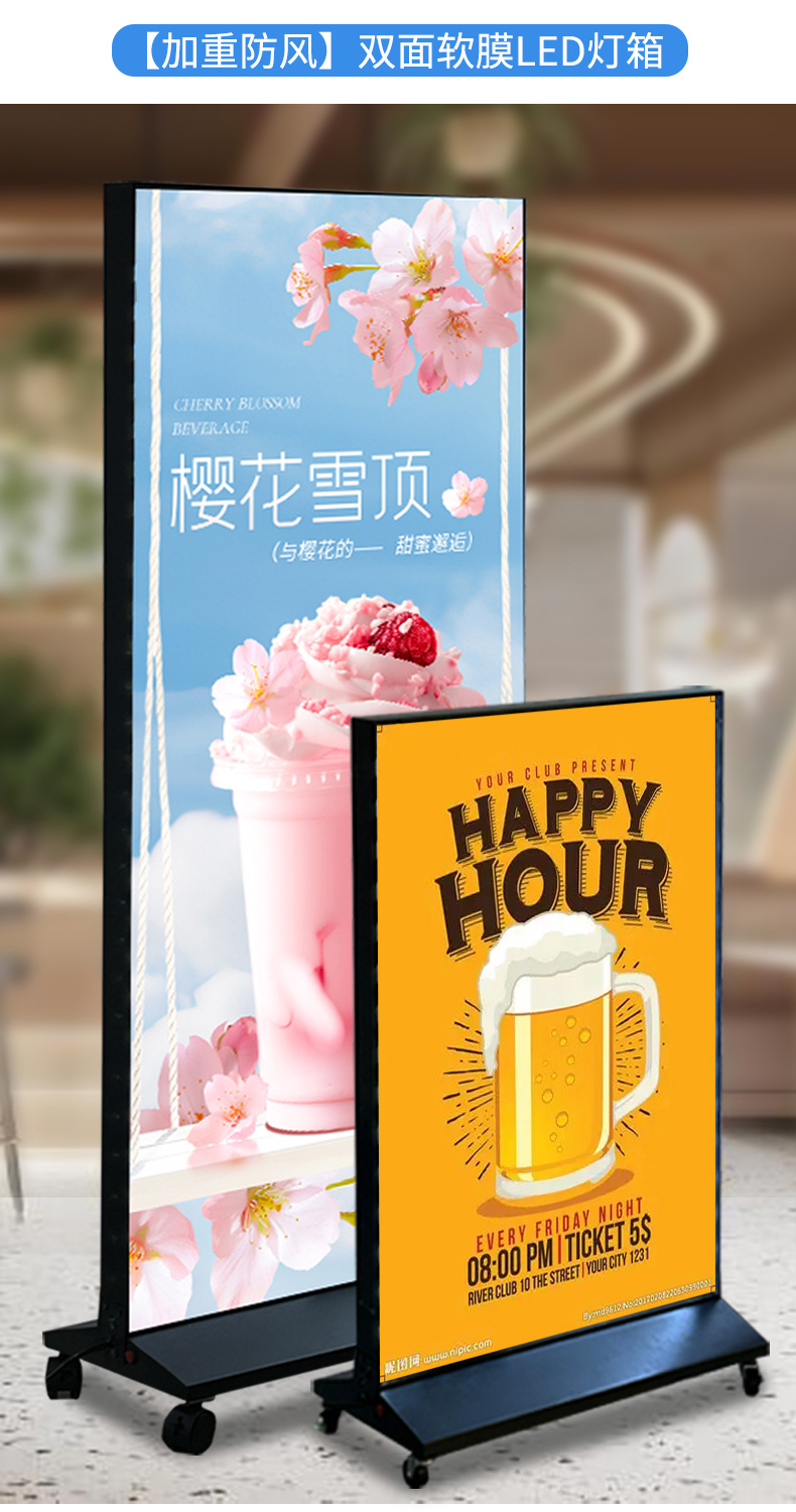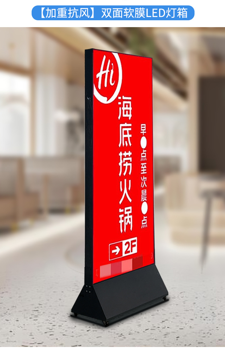 户外移动落地灯箱门口广告牌 led灯双面喷画拉布发光广告灯箱招牌