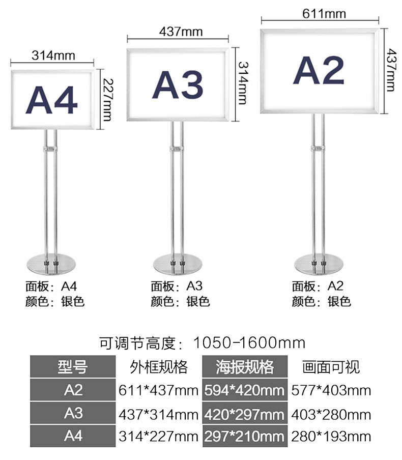 A3展架门店不锈钢立牌导视牌立式展示牌广告牌指示牌落地商场水牌