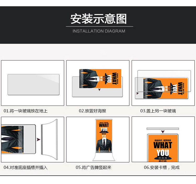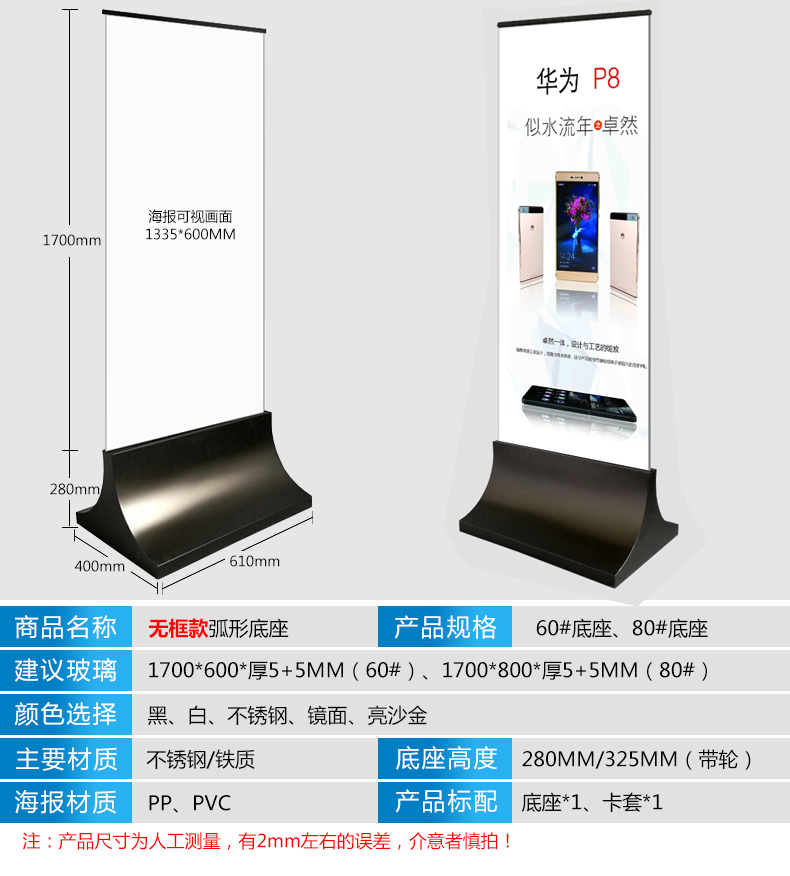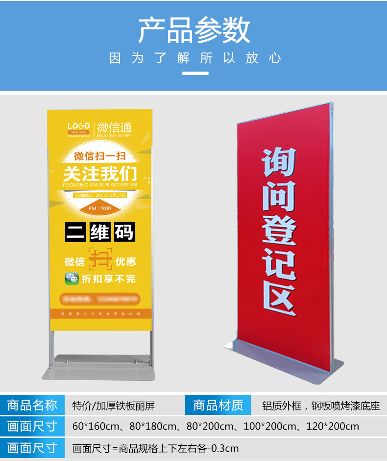 丽屏展架80x180立式铝合金立屏广告架易拉宝门型展架双面KT板展架