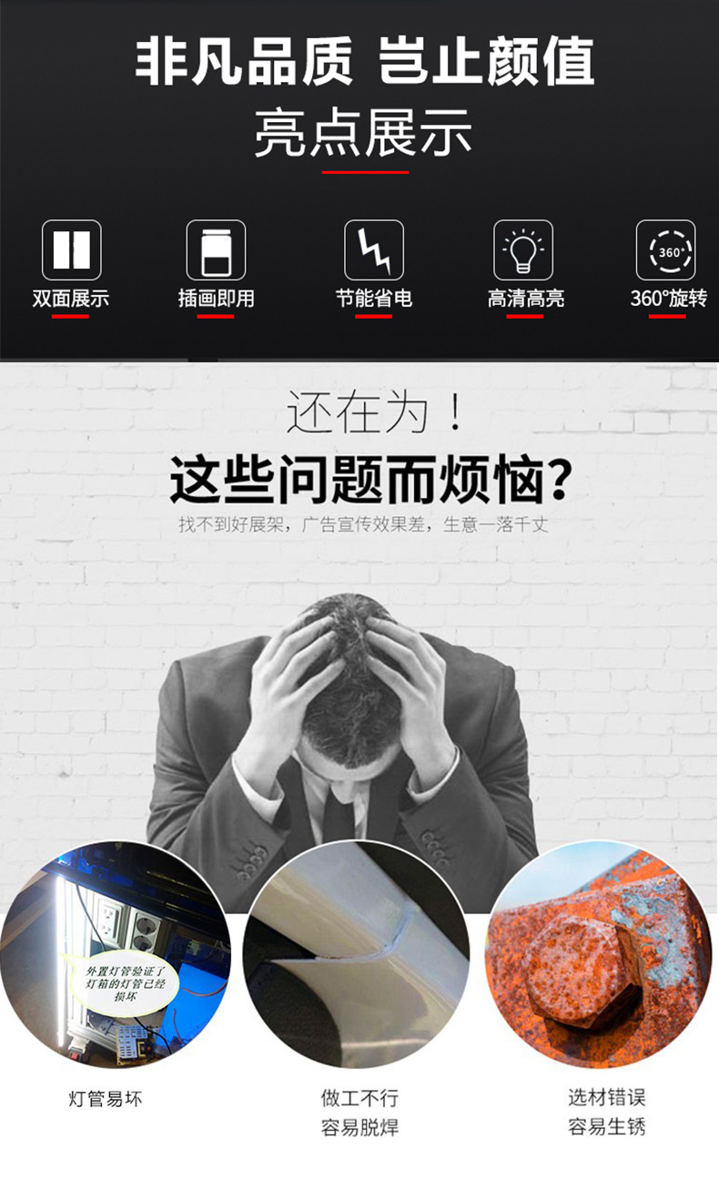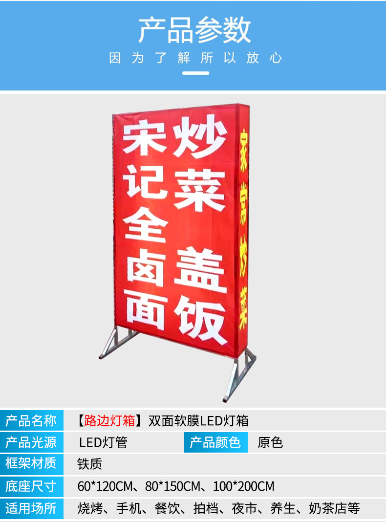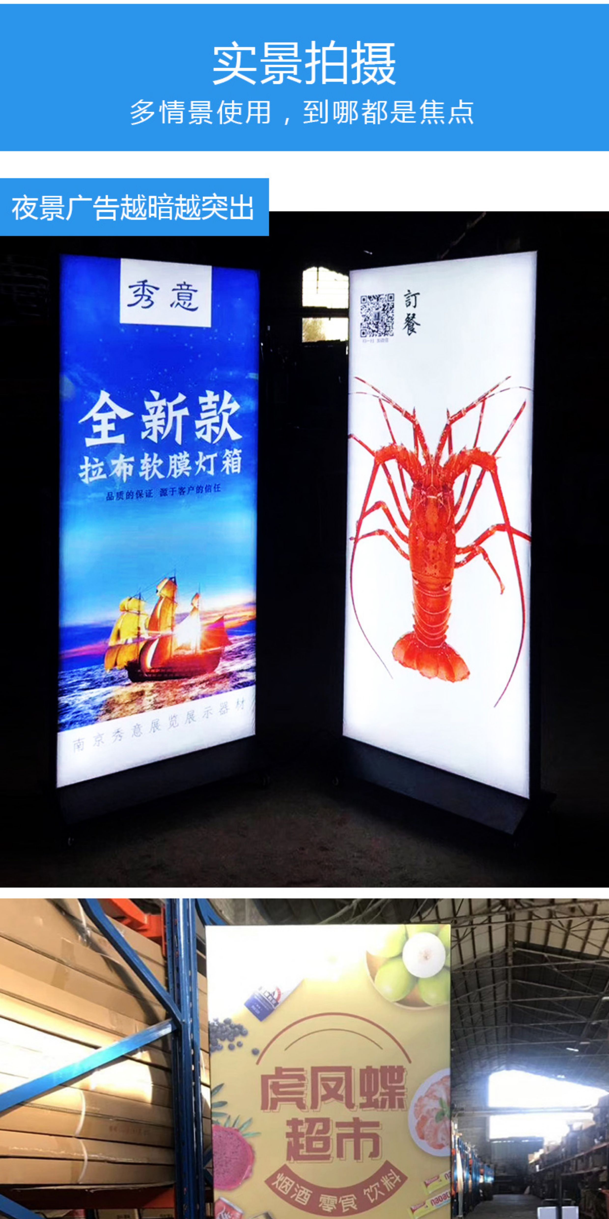 户外移动落地灯箱门口广告牌 led灯双面喷画拉布发光广告灯箱招牌