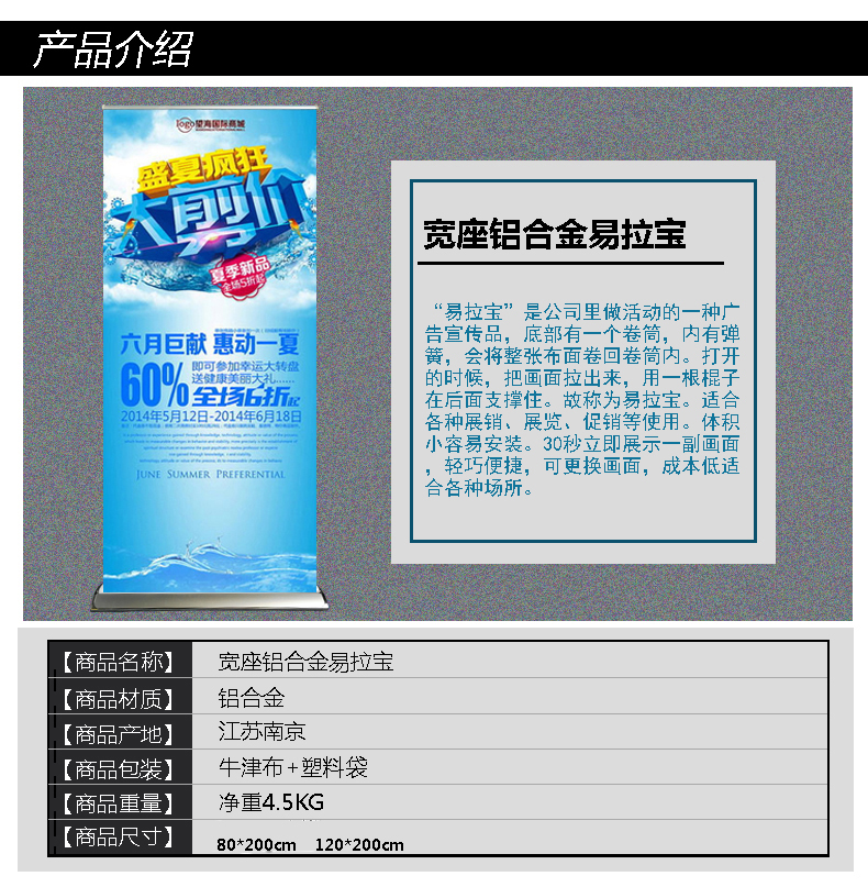 韩式X展架易拉宝直销80200易拉宝塑钢伸缩宽底座单屏易拉宝120X20