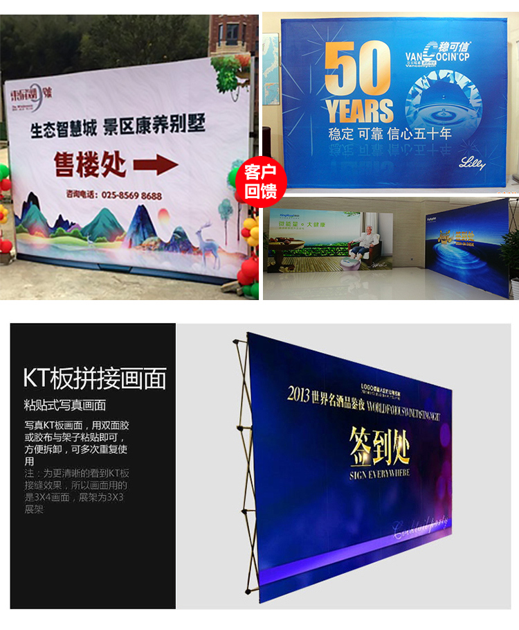 可折叠拉网架加强型铝合金弹簧拉网展架背景墙会议墙KT板展示支架
